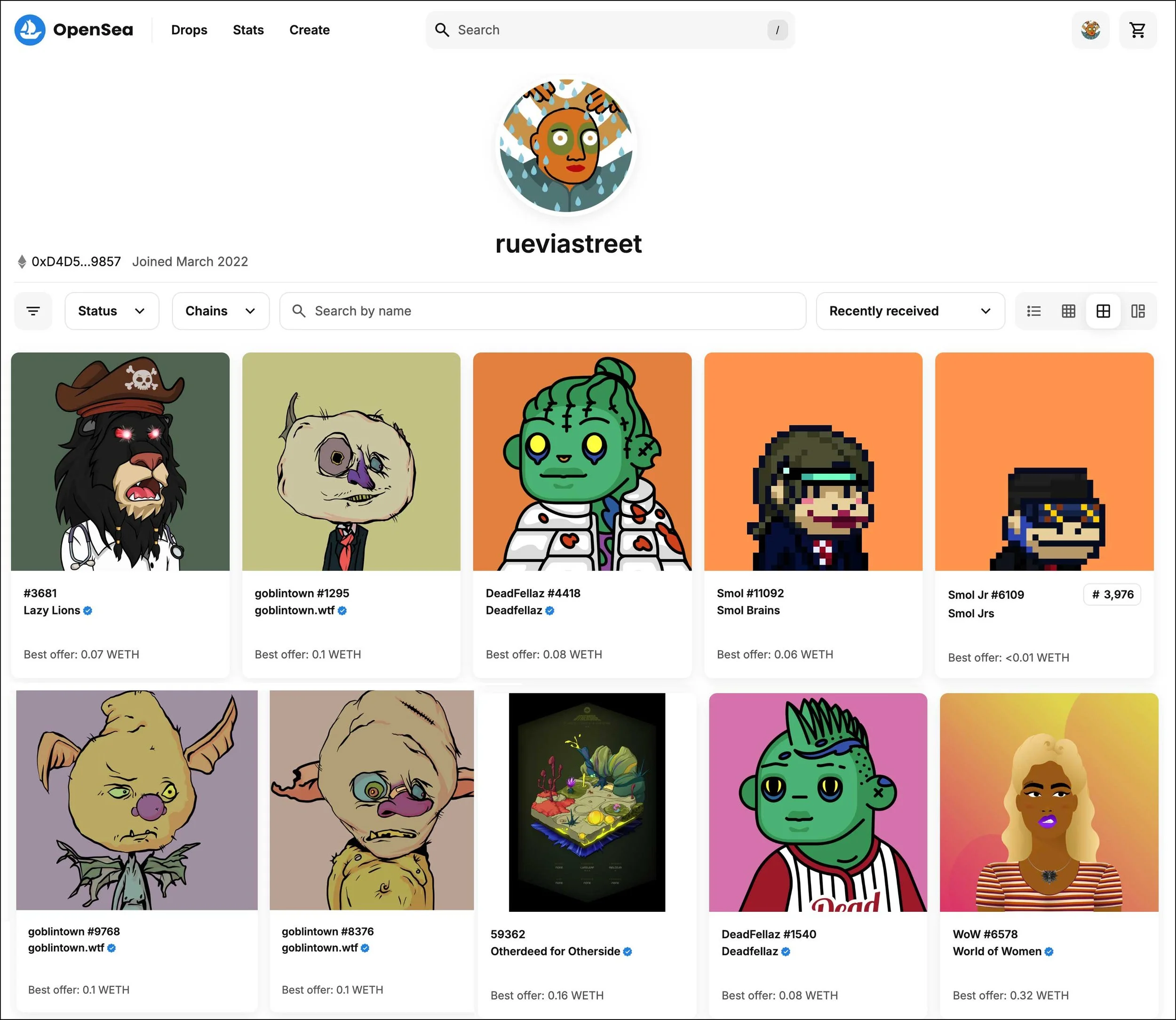 When you connect your Ethereum wallet, every NFT you buy appears on on your public Opensea collection page.